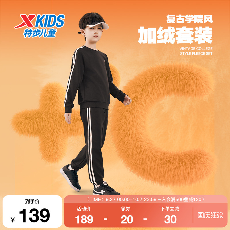 特步童装男大童套装2025年秋冬新款运动服两件套儿童套头卫衣套装