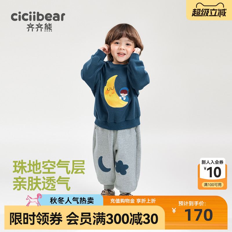 齐齐熊男童卫衣套装儿童休闲保暖套头宝宝秋冬季宽松运动服上衣