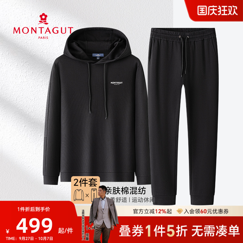[休闲连帽]梦特娇卫衣两件套男运动套装简约百搭春秋男生套头卫衣