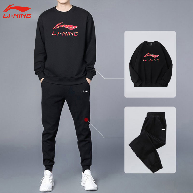 李宁运动套装男秋季新款圆领套头卫衣运动长裤跑步男士加厚运动服