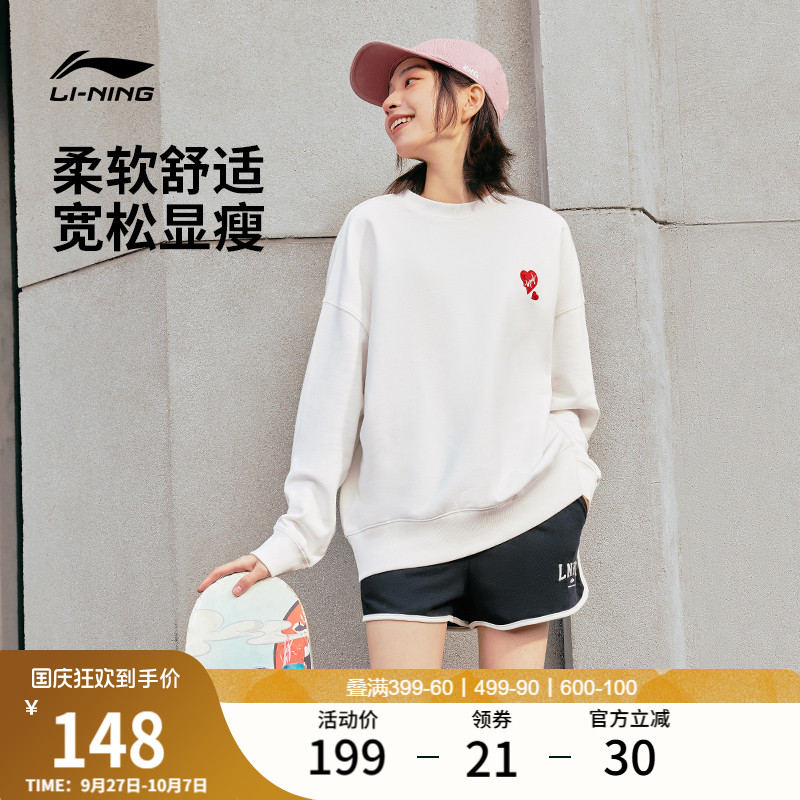 李宁孙颖莎同款卫衣女春秋官方爱心卫衣长袖圆领上衣宽松运动服女