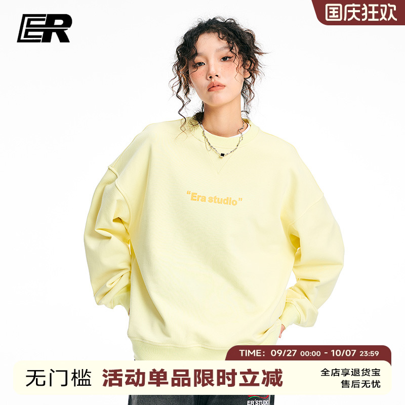 【邓佳鑫同款】ER撞色字母圆领卫衣男女春秋潮牌情侣装上衣基础款
