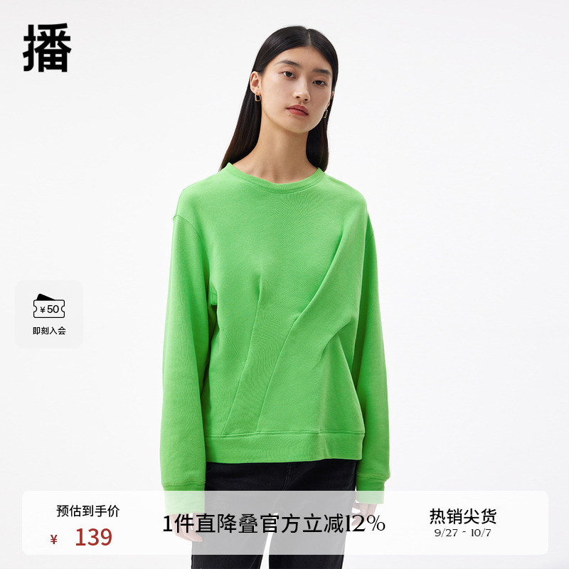 SPAO韩国同款25年春秋女士日常通勤基础简约纯色套头廓形圆领卫衣