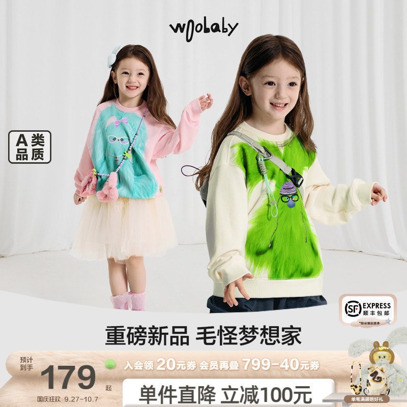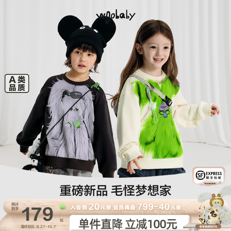 小明星太初同款毛怪|woobaby儿童卫衣男女童25春秋新款上衣亲子装