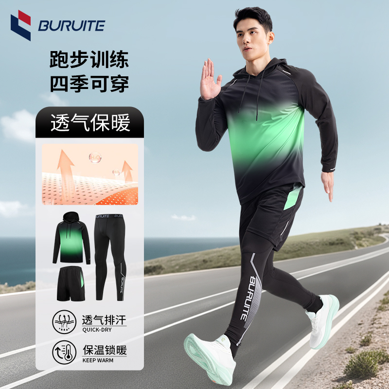 361跑步运动套装男款速干高弹健身房衣服秋冬晨跑田径训练紧身衣