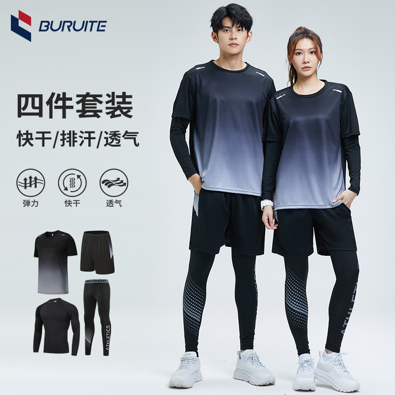 新款运动套装男士健身房秋季紧身女速干装备篮球衣服晨跑跑步服