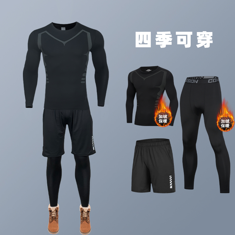 健身服套装男晨跑运动紧身衣透气速干健身房运动五件套篮球训练服