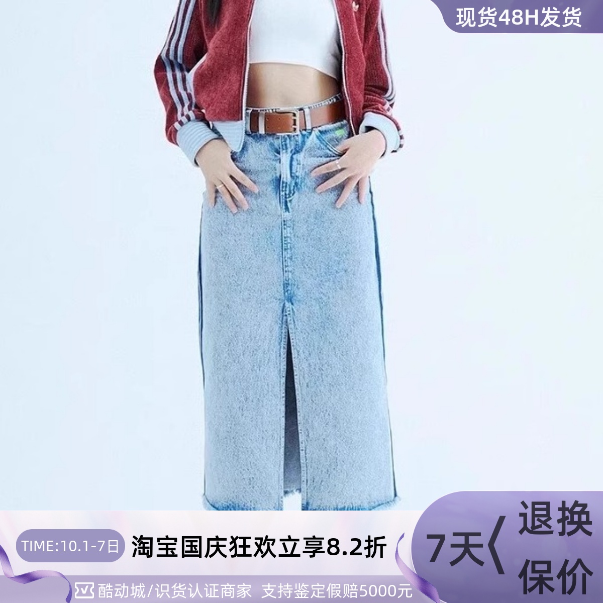 Adidas 三叶草 女款运动休闲时尚百搭侧开纽扣中长半身裙 HC6566