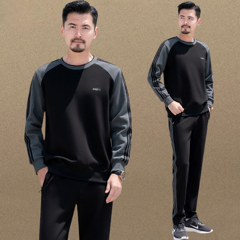 中老年运动服套装男士春秋季爸爸长袖圆领套头中年休闲春装两件套