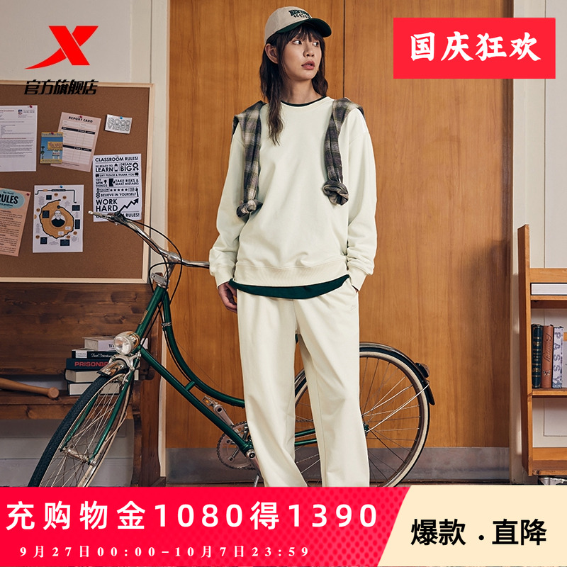 特步运动套装男女同款秋季新款休闲针织长袖套头卫衣针织长裤卫裤