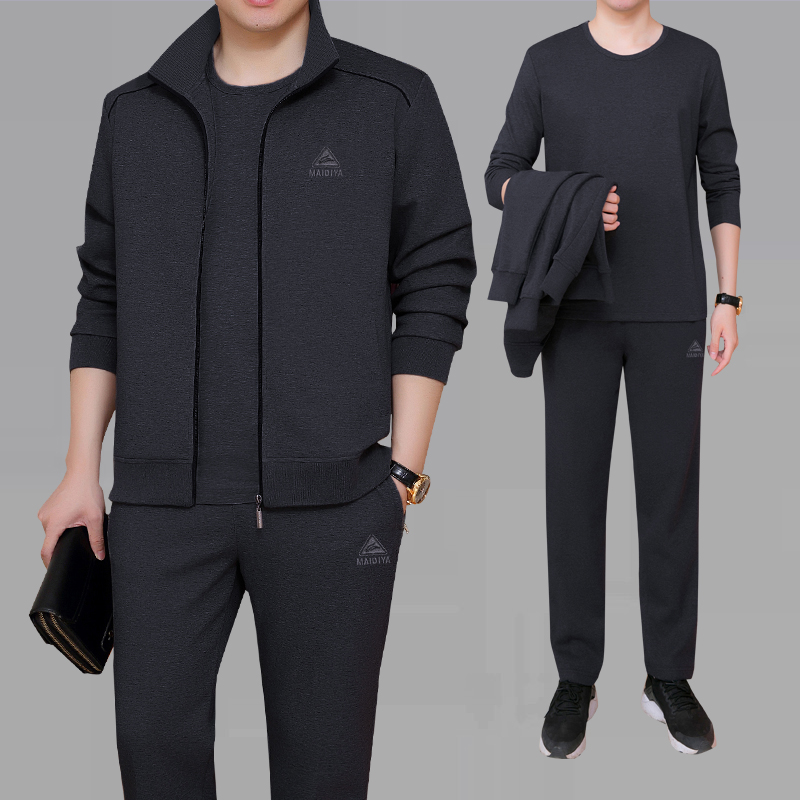 中老年爸爸秋装运动服休闲外套男士春秋大码中年跑步卫衣三件套装