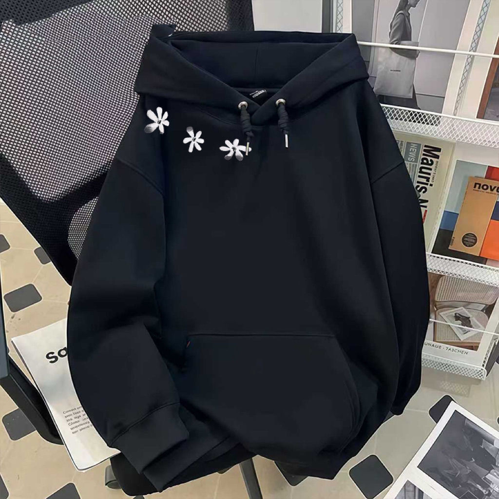 银狐绒美式休闲字母花卉印花连帽卫衣男女秋冬宽松加绒上衣薄外套
