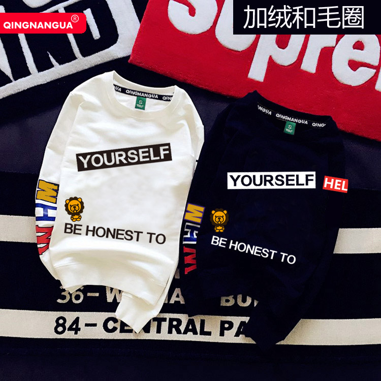 秋冬原宿BF港风潮牌烫金字母印花卫衣加绒韩版班服男女情侣亲子装