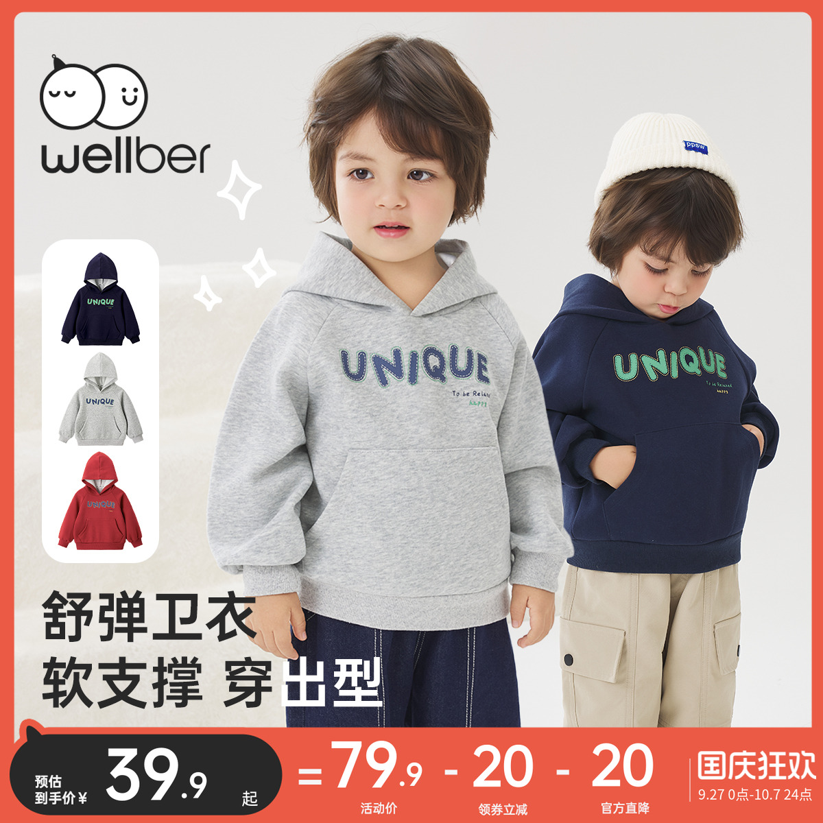 暇步士童装儿童连帽卫衣秋冬新款男童运动上衣女童套头卫衣休闲