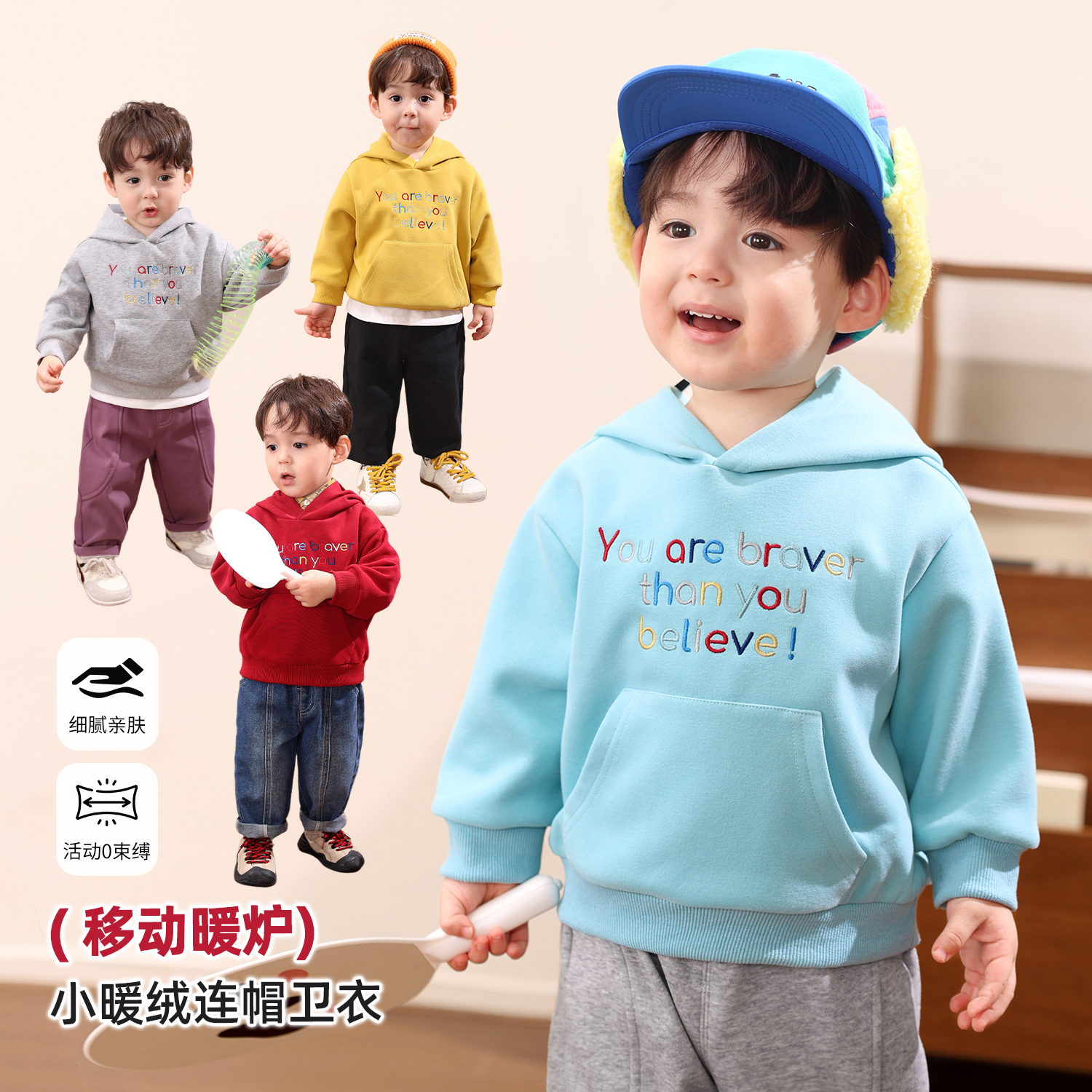 小O爸男婴童 宝宝加绒卫衣秋冬季2025新款婴儿卡通套头连帽上衣