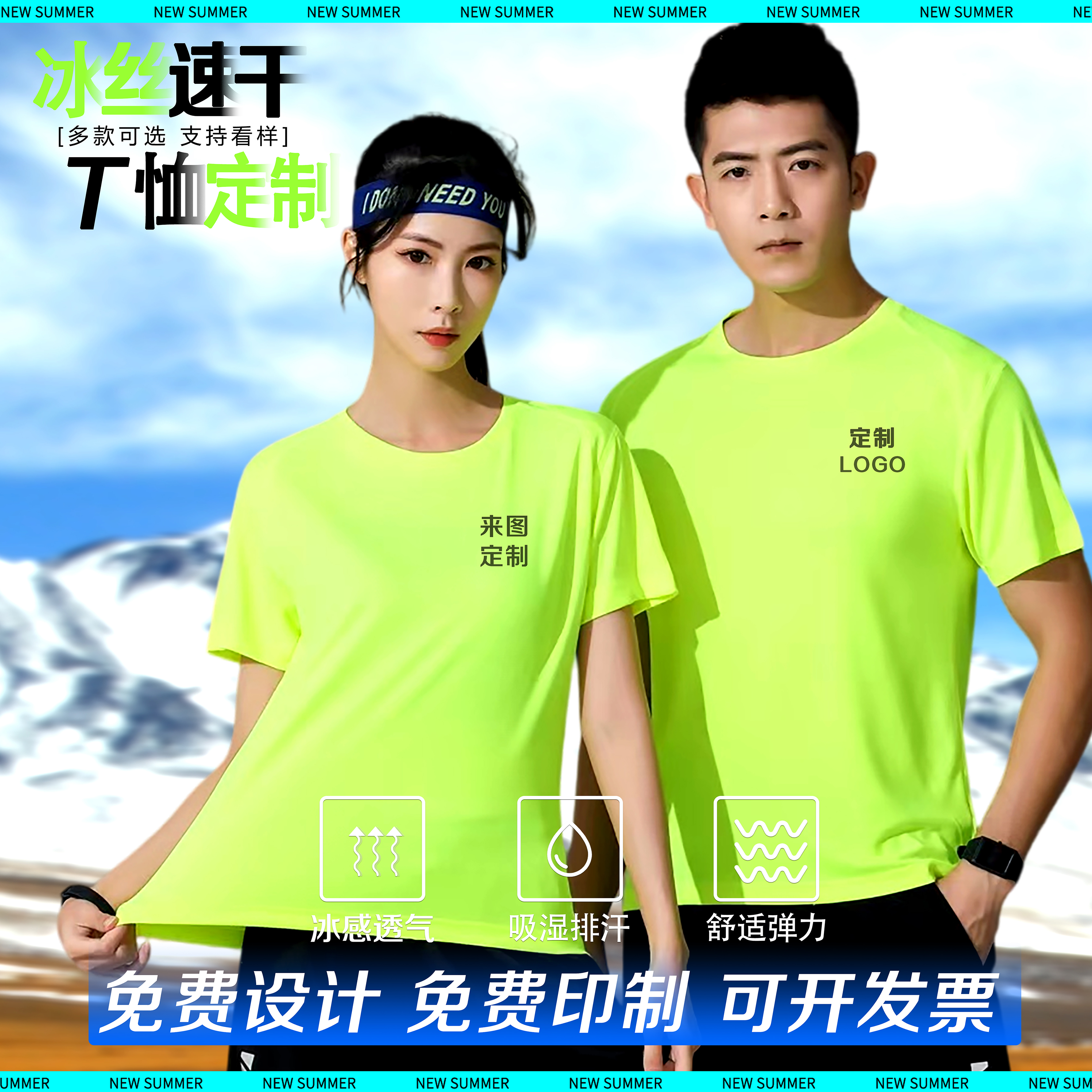 外贸男士夏季荧光绿短袖 半袖圆领运动速干T恤健身上衣
