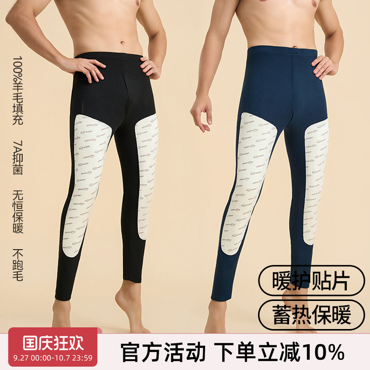 朵彩男士100%羊毛保暖裤全羊毛打底裤秋裤打底裤纯羊毛裤加厚款