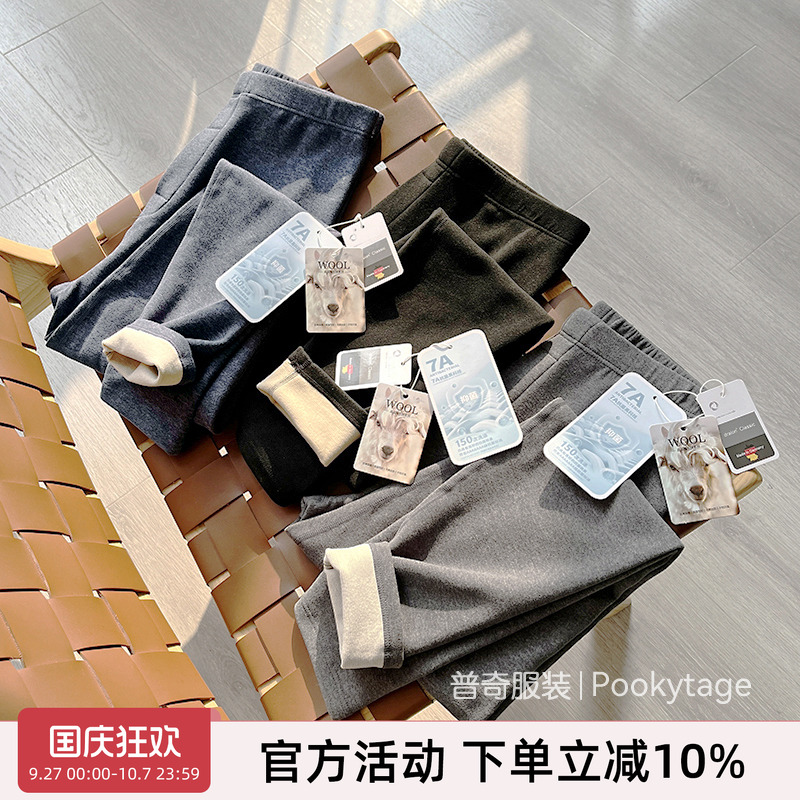 儿童全羊毛保暖裤加绒加厚男童女童内穿棉裤秋冬中大童高腰打底裤