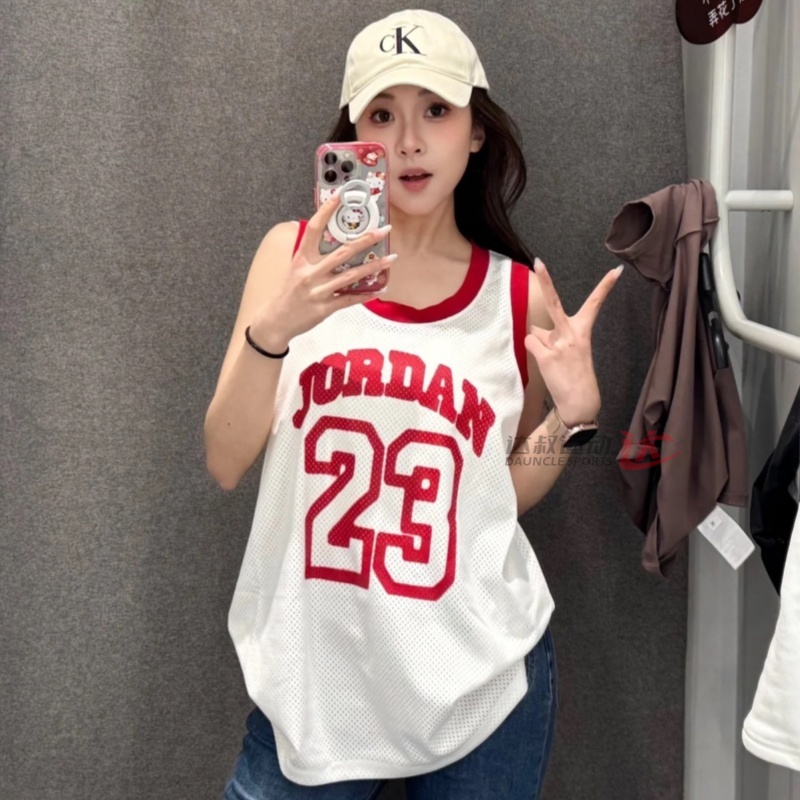 NIKE耐克Jordan篮球服男2025新款23号网眼无袖篮球背心HF9376-010