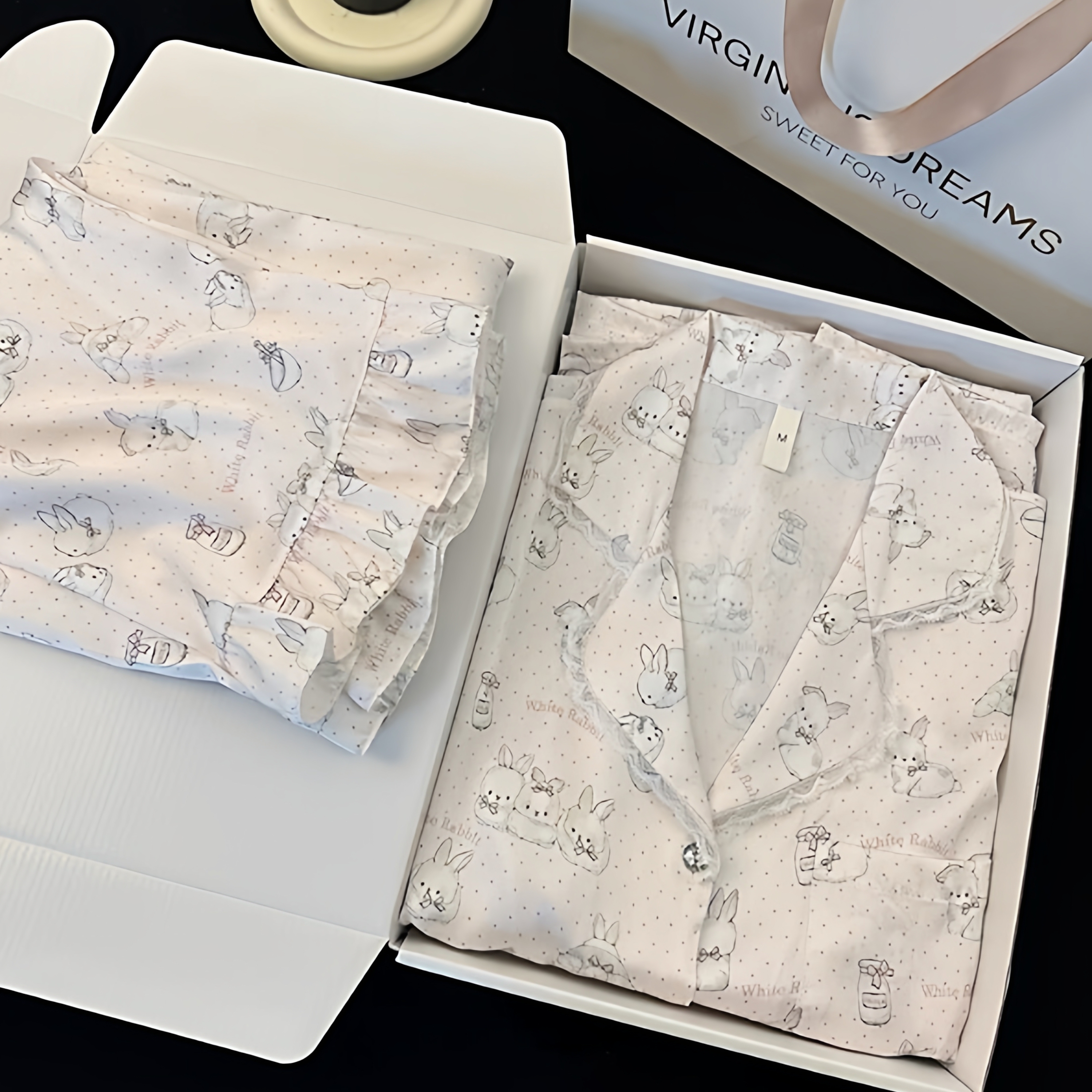 真丝睡衣吊带睡裙春秋新款甜美卡通可爱家居服三件套桑蚕丝礼盒装