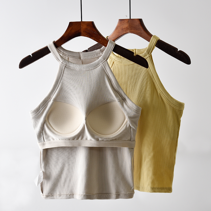 吊带女夏季带胸垫美背内衣个性挂脖背心露脐瑜伽上衣免文胸打底衫