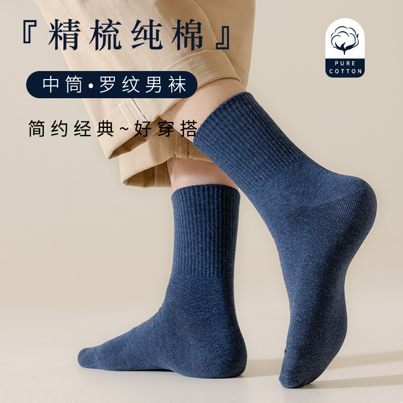 百纳双针竖坑长绒棉中筒男袜 无骨舒适吸汗纯棉休闲商务秋冬男袜