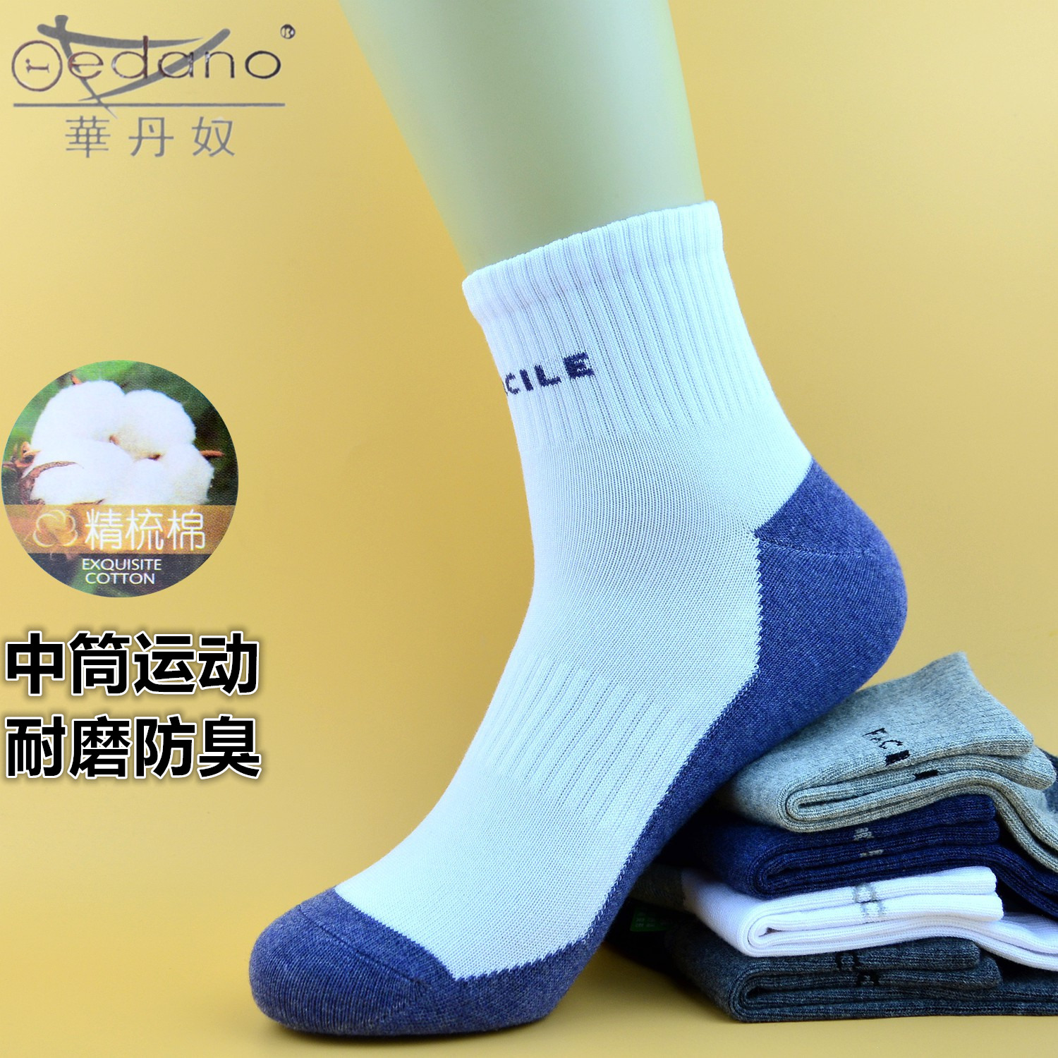 华丹奴男士秋冬中筒素色运动男袜纯棉防臭舒适莱卡厚棉袜子3R496