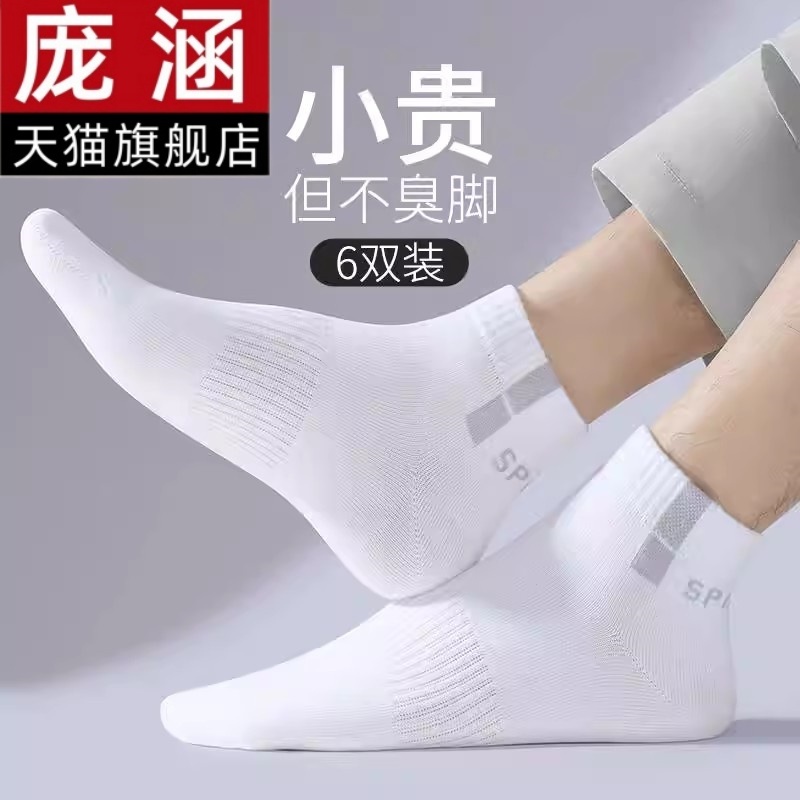 海e柜男装 纯棉防臭袜舒适吸汗男袜子春夏季新品薄款白色短筒袜