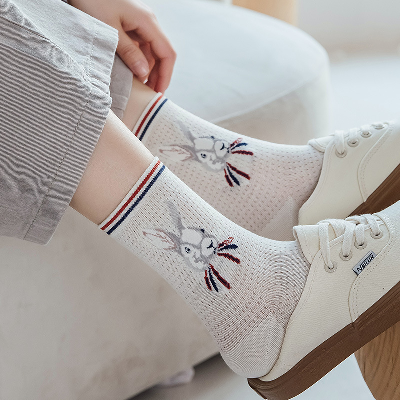 袜子女韩版中筒ins潮JK少女日系春夏可爱卡通小兔提花中筒袜