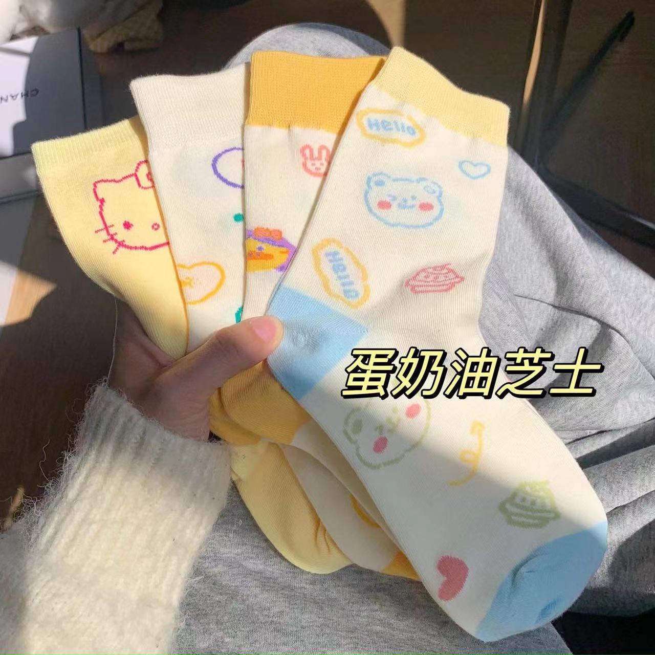 袜子女韩版中筒ins潮JK少女日系春夏可爱卡通小熊提花KT猫中筒袜