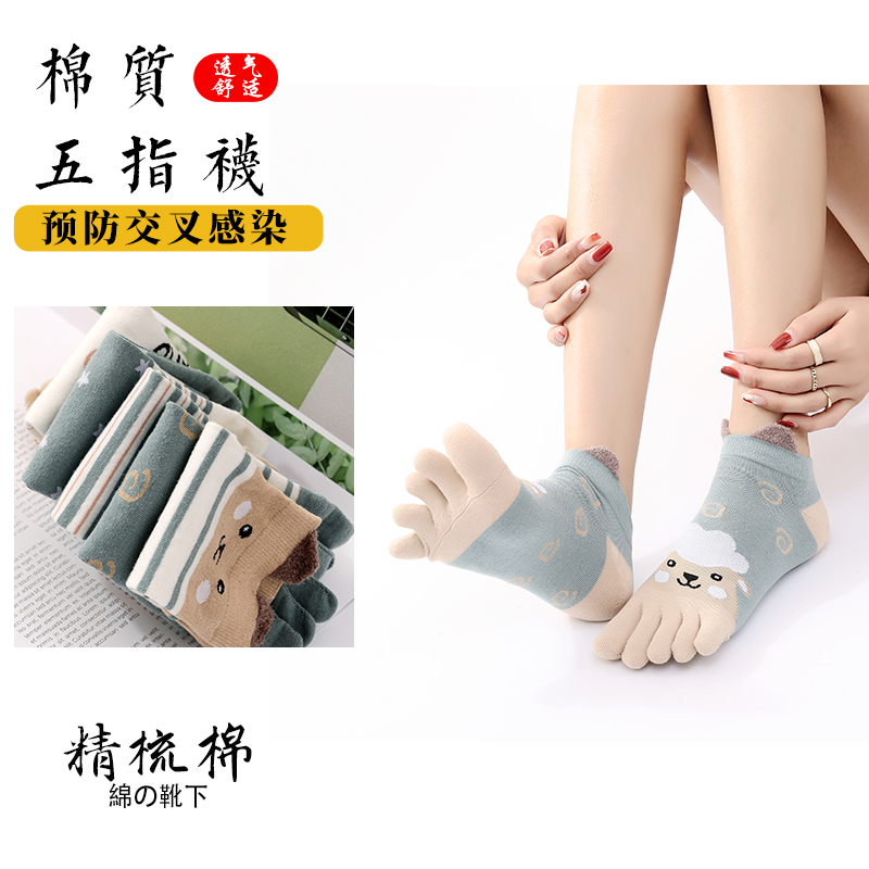 内田秋冬中筒卡通毛绒提花棉五指袜女款可爱宽口不勒腿脚趾袜子