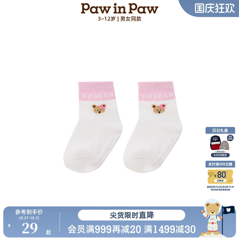 小熊袜子女中筒袜春秋款纯棉可爱卡通配德训鞋ins潮动物提花棉袜