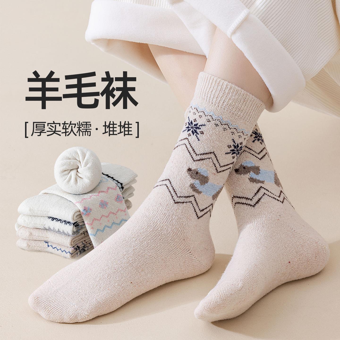 女士羊毛袜点子纱中筒袜卡通小狗女袜保暖提花外贸袜子加厚日单袜