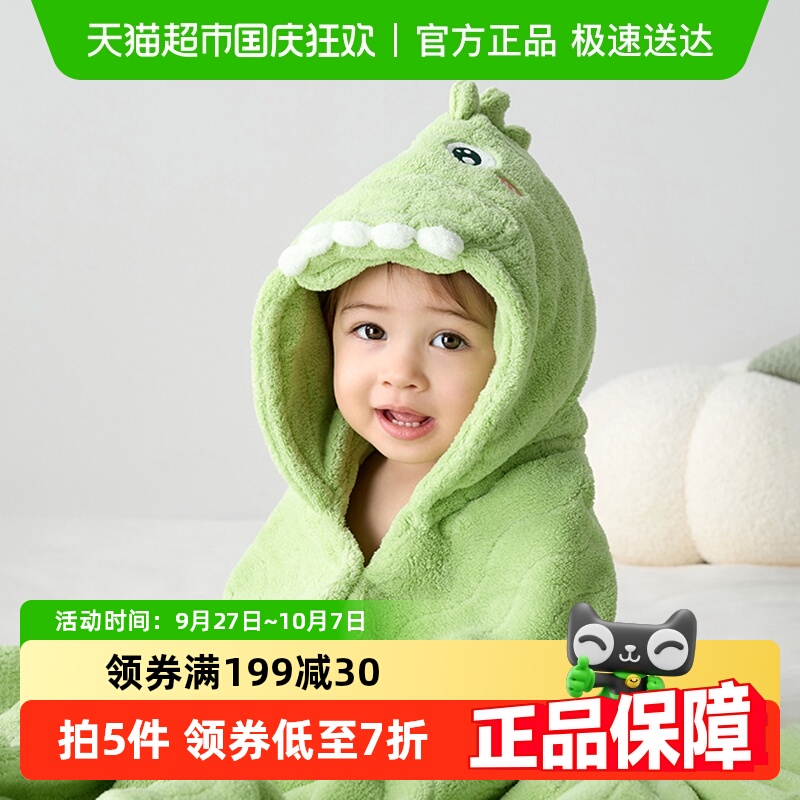 新生婴儿童浴巾浴袍夏季男孩带帽斗篷浴巾女宝毛巾可穿吸水速干宝