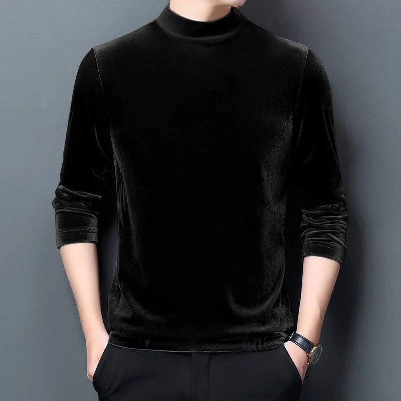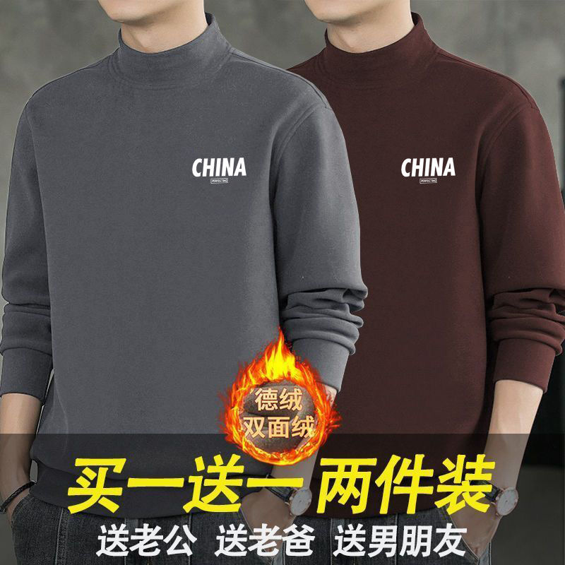 半高领打底衫男士中领长袖T恤卫衣磨毛秋衣双面德绒上衣保暖内衣