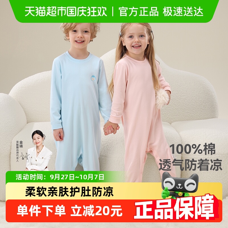 贝肽斯儿童睡衣秋冬新款男女中大童连体家居服纯棉宝宝分腿睡袋春