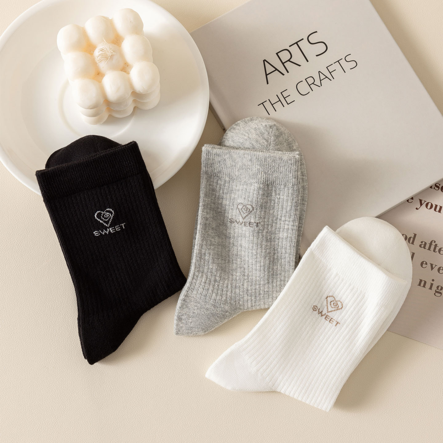 袜子女中筒袜春秋季纯棉吸汗防臭袜女士纯色正品棉袜中帮加厚女袜