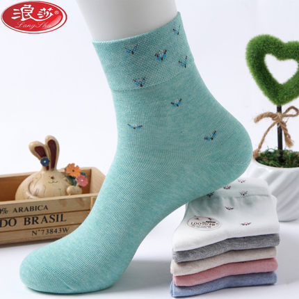 浪莎女袜子纯棉袜女短袜透气纯棉袜运动休闲全棉春秋冬中筒棉袜子