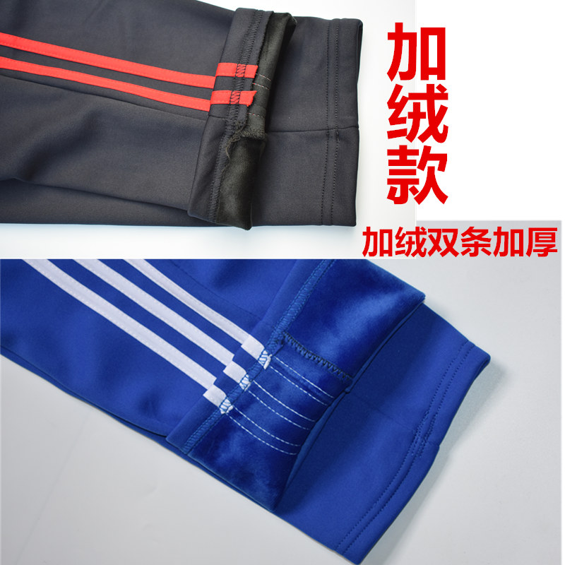 冬季加绒加厚校服裤子男女小学初高中防寒保暖校裤藏蓝运动裤包邮