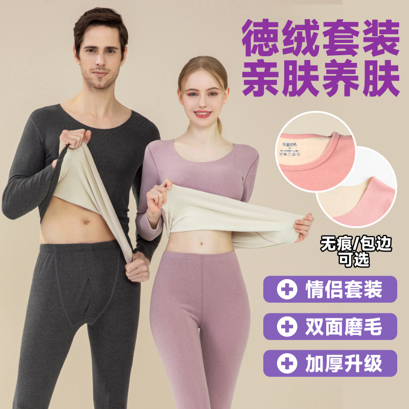 男女款都有!三秒速热驼绒情侣高弹加绒加厚打底裤秋裤保暖裤包邮