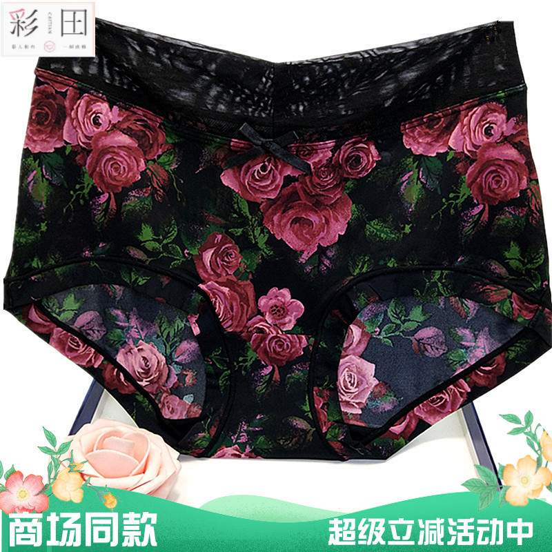 彩田内裤女 中腰30561款性感蕾丝边冰丝莫代尔棉和高腰女士平角裤