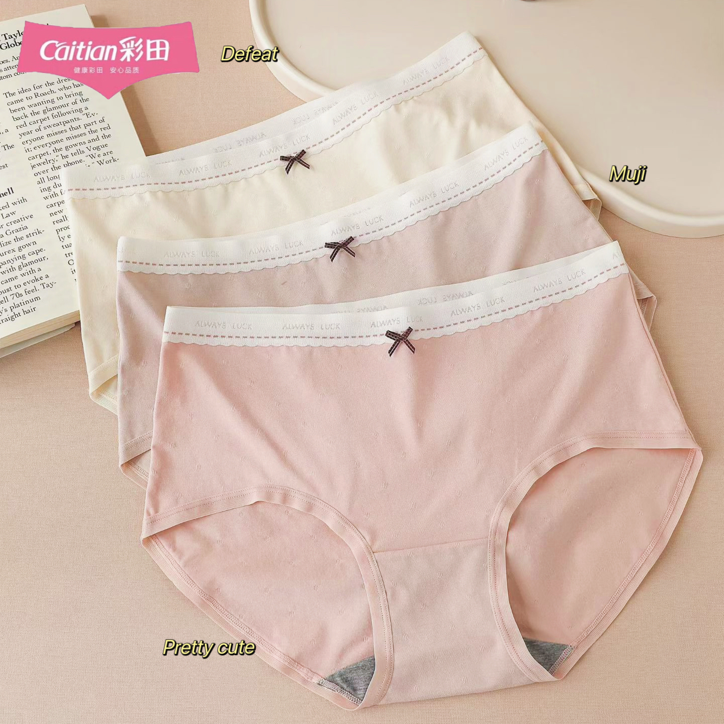 四季款 彩田内裤女莫代尔+棉中腰纯色提花石墨烯抗菌女式裤头高腰