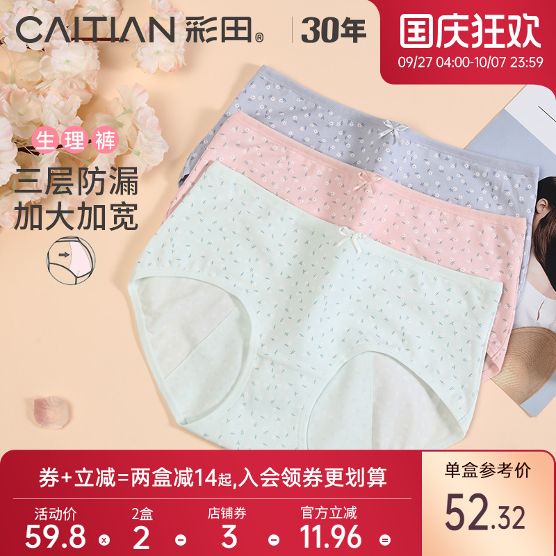 彩田新疆棉生理裤内裤女士中腰月经期防侧漏大姨妈纯色卫生三角裤