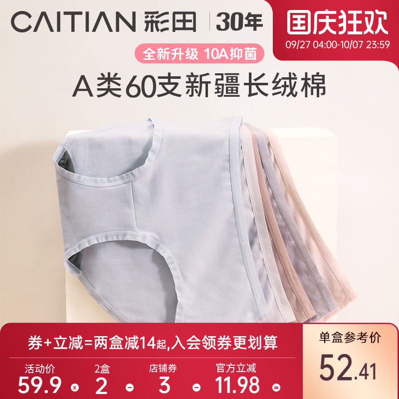 彩田棉内裤女进口澳洲棉7A抗菌裆女士中腰包臀三角裤少女生内裤