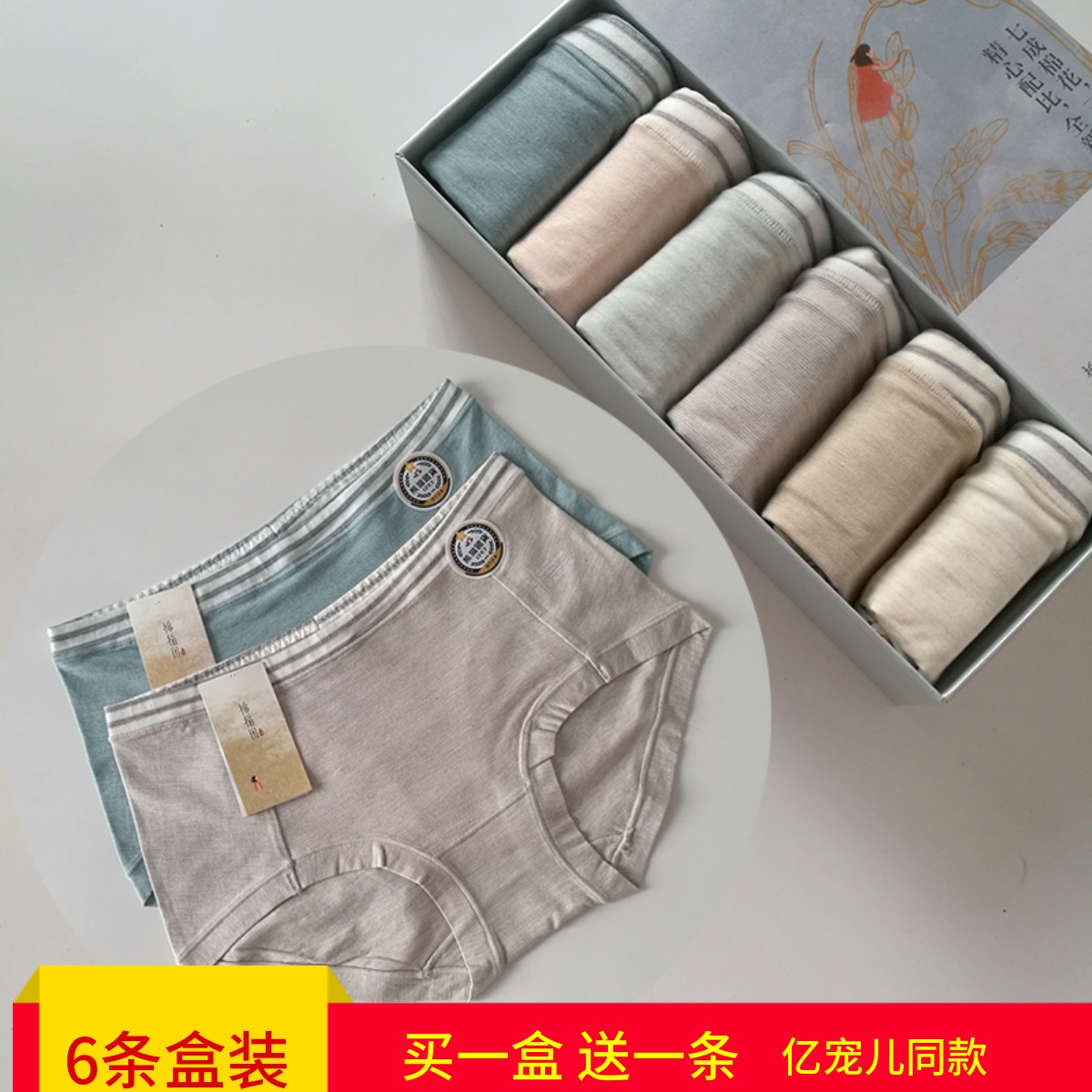 棉稻田内裤女亿宠儿纯棉中腰纯色透气日系少女高腰三角裤6条盒装