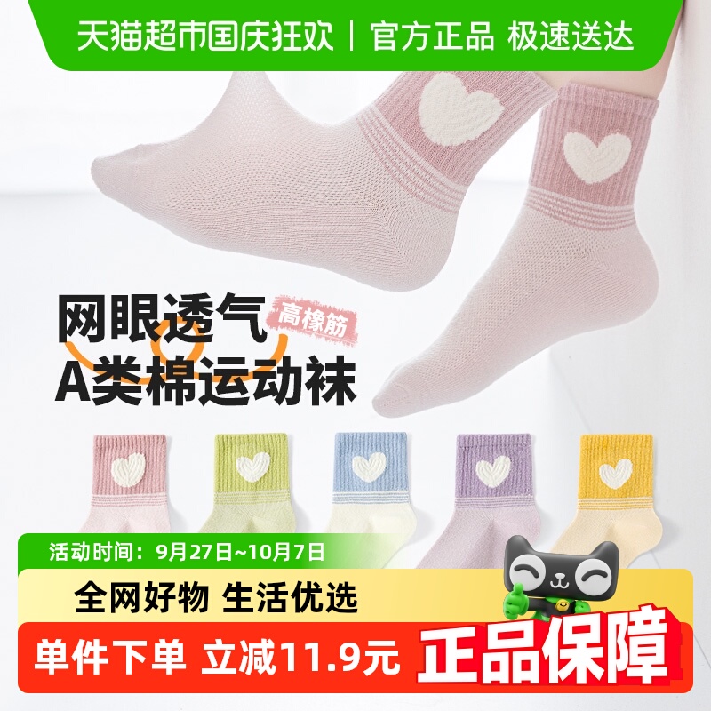 六指鼠儿童袜子女童女宝宝网眼中筒袜学生春秋透气运动夏季薄款