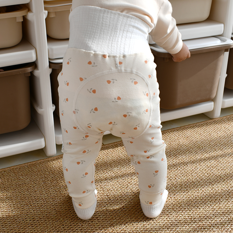 婴儿高腰裤春秋护肚秋裤保暖家居睡裤大PP裤可开档免脱宝宝长裤子