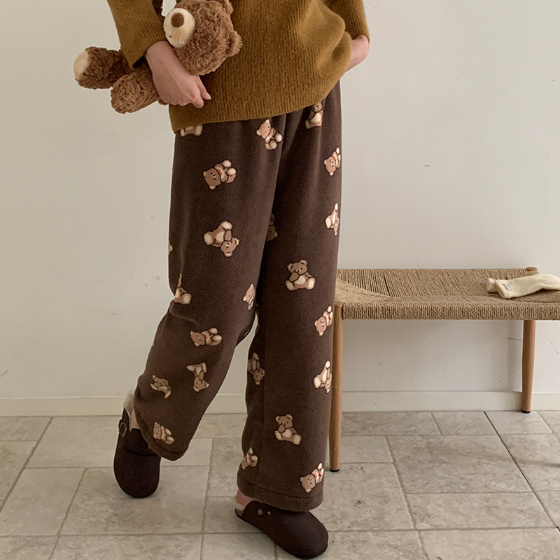 珊瑚绒睡裤女款秋冬季加厚加绒可爱法兰绒家居服冬天学生保暖长裤