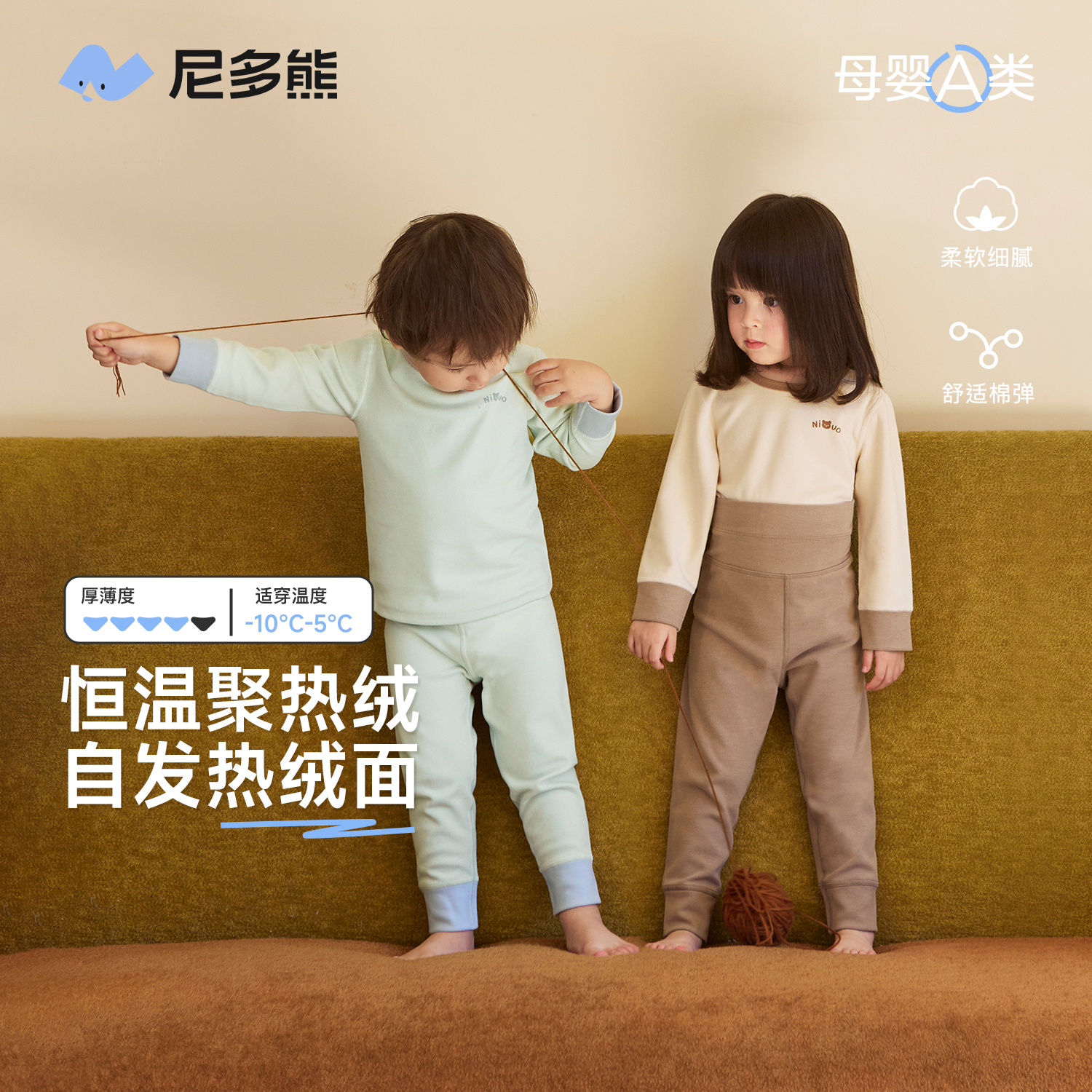 尼多熊冬款宝宝保暖内衣套装加绒男女童高腰护肚秋衣秋裤婴儿加厚
