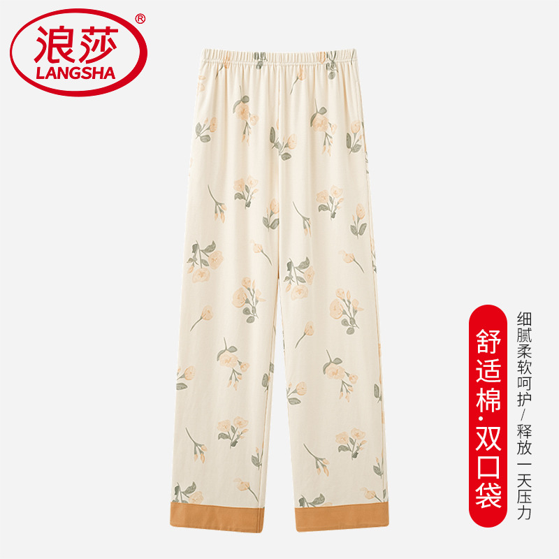 浪莎睡裤女士春秋夏季纯棉薄款夏天宽松空调休闲裤全棉家居裤子